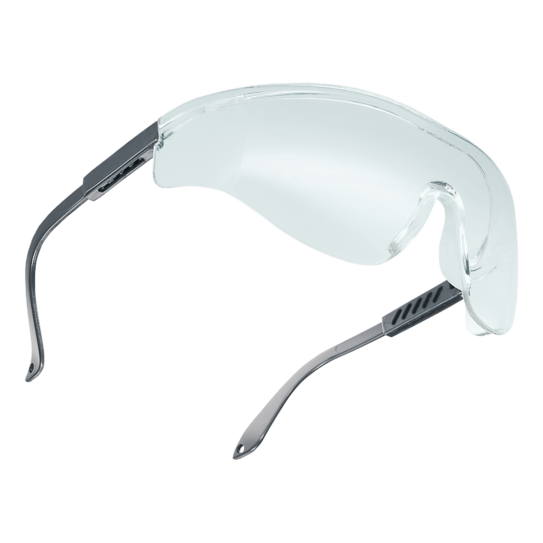 Mono lens rimless eyeglasses in polycarbonate with extendable and pivoted side arms. The convex lenses and the airflow allow for anti-fog eyeglasses.