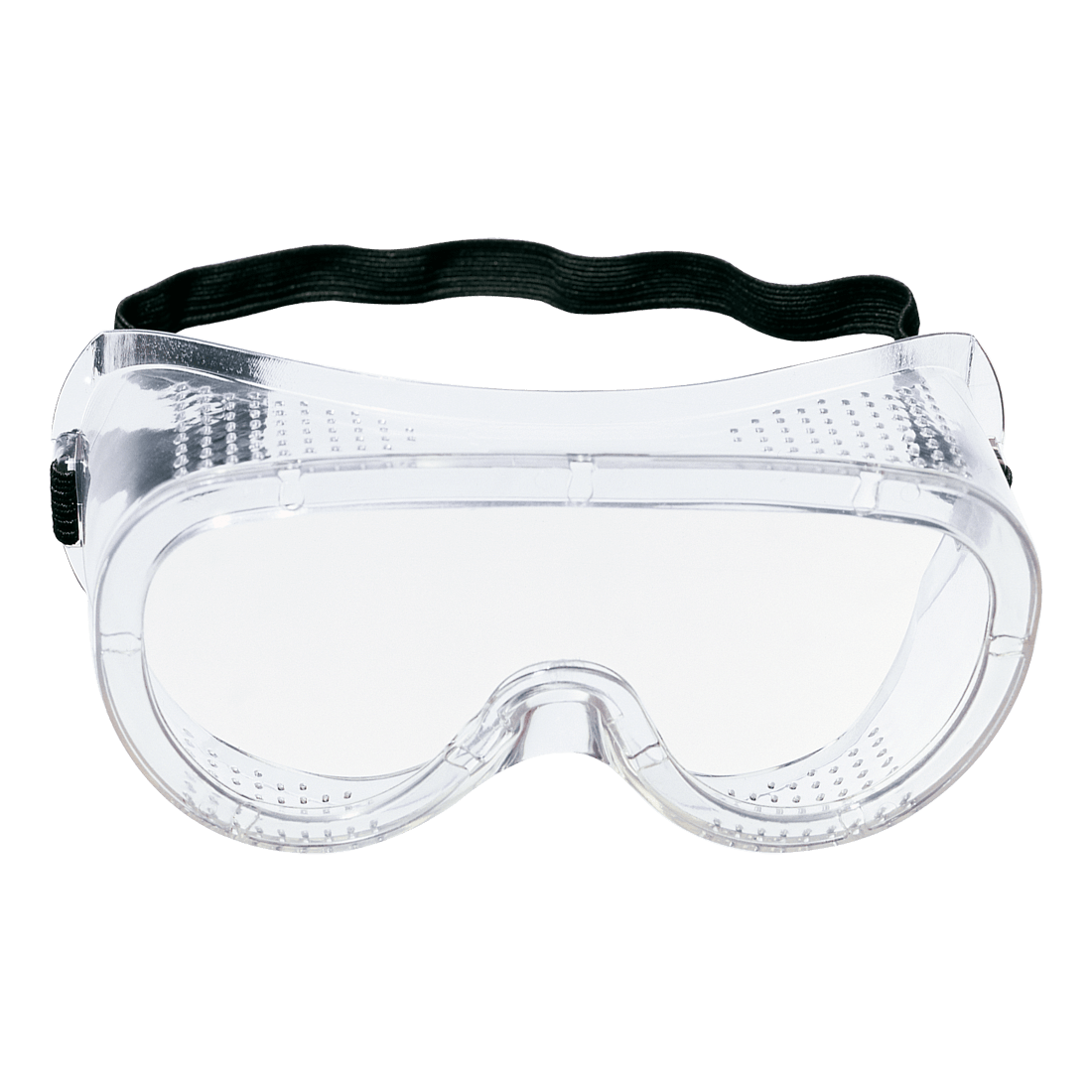 Watertight safety goggles thanks to the adjustable elasticated headband and inner lining ensuring a perfect fit to the face. Feature direct ventilation holes. Provide an excellent barrier against solid particles and splashing like water, acids and solvents. Feature an ergonomic design and an extremely comfortable shape.
