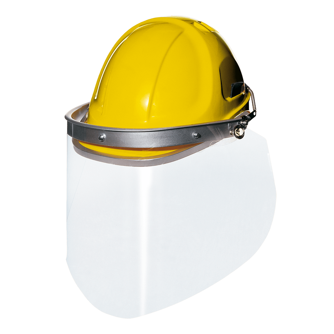 Face shield in polycarbonate, attachable to helmet through an adapter. Its ergonomic shape, large size and considerable thickness make it ideal for protection against heat and large-size solid bodies. It also protects the temples and neck area.