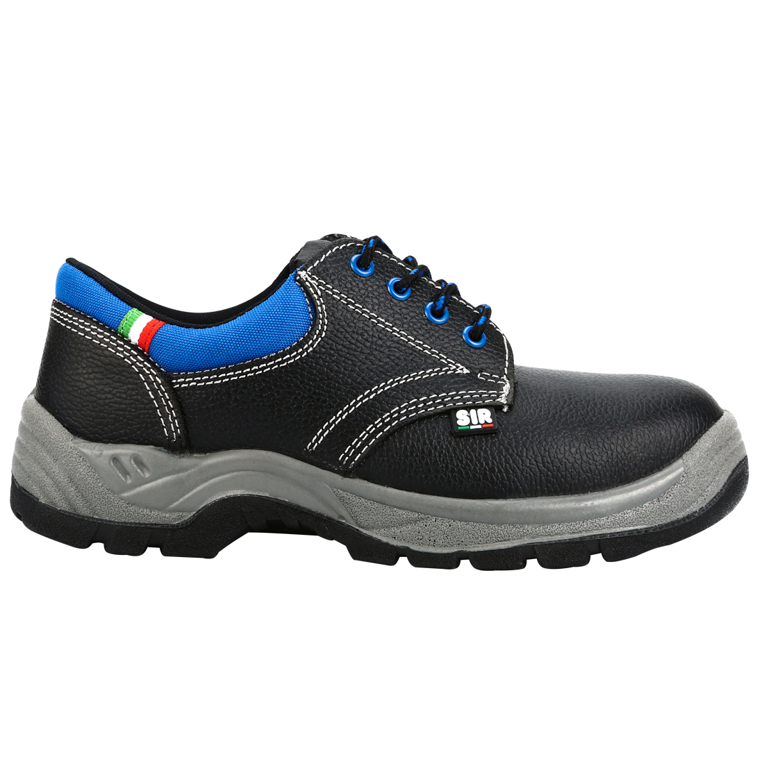 低幫安全鞋鋼包頭耐壓可達200Joule的沖擊,金屬材料防刺穿中底,牛皮鞋面。